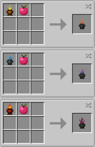 **Entei** : Friandise d'Entei → 1 Boite de Friandise, 3 Lingots de Netherite, 1 Bloc de Pierre Feu, 4 Joyaux Feu\