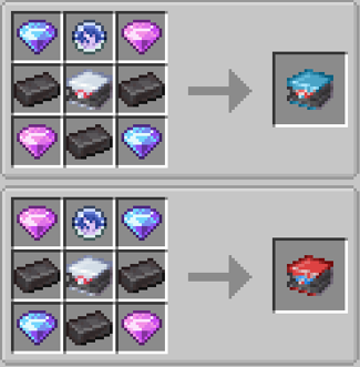 **Suicune** : Friandise de Suicune → 1 Boite de Friandise, 3 Lingots de Netherite, 1 Bloc de Pierre Eau, 4 Joyaux Eau\